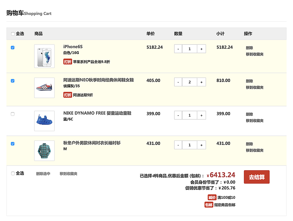 VMCSHOP购物车系统可高效计算会员折扣、促销优惠、库存状况,并在多个终端共享会员购物车数据,例如会员通过PC端将商品加入购物车,可随时在手机端进行结算。